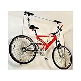 *Don't let bikes take over your garage - store bikes safely up and out of the way*Twin pulley system gently lifts bike at seat & handlebars with anti-scratch PVC-dipped hooks*Safety locking mechanism prevents accidental release while lowering; rope tie-down cleat included*Installs in minutes on ceilings up to 14'; fits all styles of bikes to 50 lbs*Strong all-steel construction with anti-corroding powder coat. One lift lifts and stores one bikeThe better way to store your bikes! Lets you 'create' additional garage storage space overhead; saves damage to bikes and vehicle scratches. Includes pulleys and mounts, padded lift hooks, rope & cleat, mounting hardware & clear installation instructions.