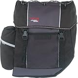 (More customer reviews)I have used the bags for over a year for bicycle commuting to work and they provide ample space to haul a laptop computer on one side, and work-clothes, etc on the other side.There are 2 clamps on each bag for the rear rack, plus a swivel lock on the underside of the bag to hold them tight onto the rack. There is also a hook with an elastic cord on the bottom for each bag.I've ridden over 1,000 miles with the bags and they have not fallen off or come loose.The elastic cords on the top of the bags are useful to hold additional odd shaped items. The bags are water resistant, but if it's raining, some water may leak in from the bottom, so it's best to store a laptop computer in a plastic bag.